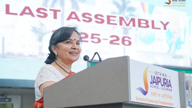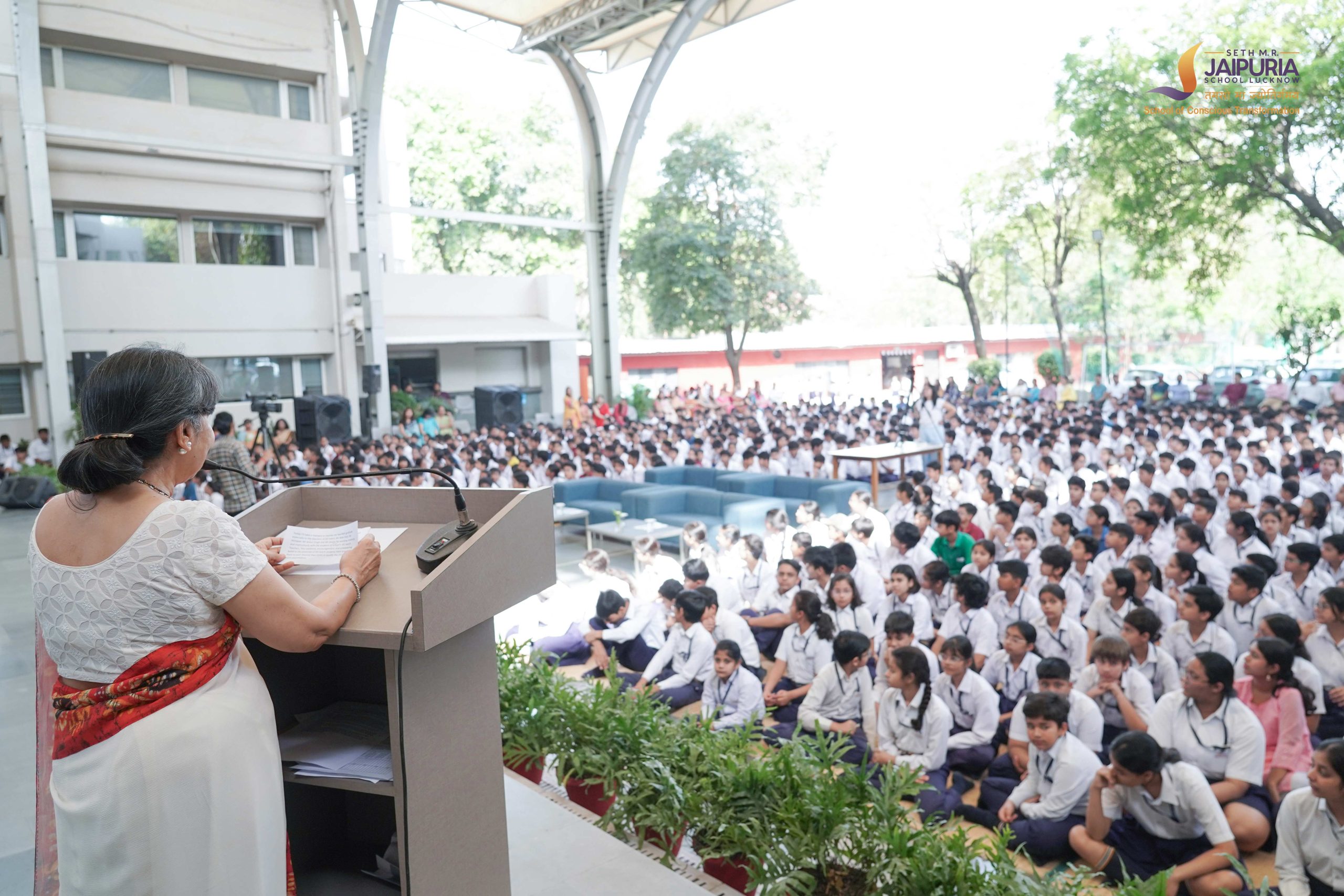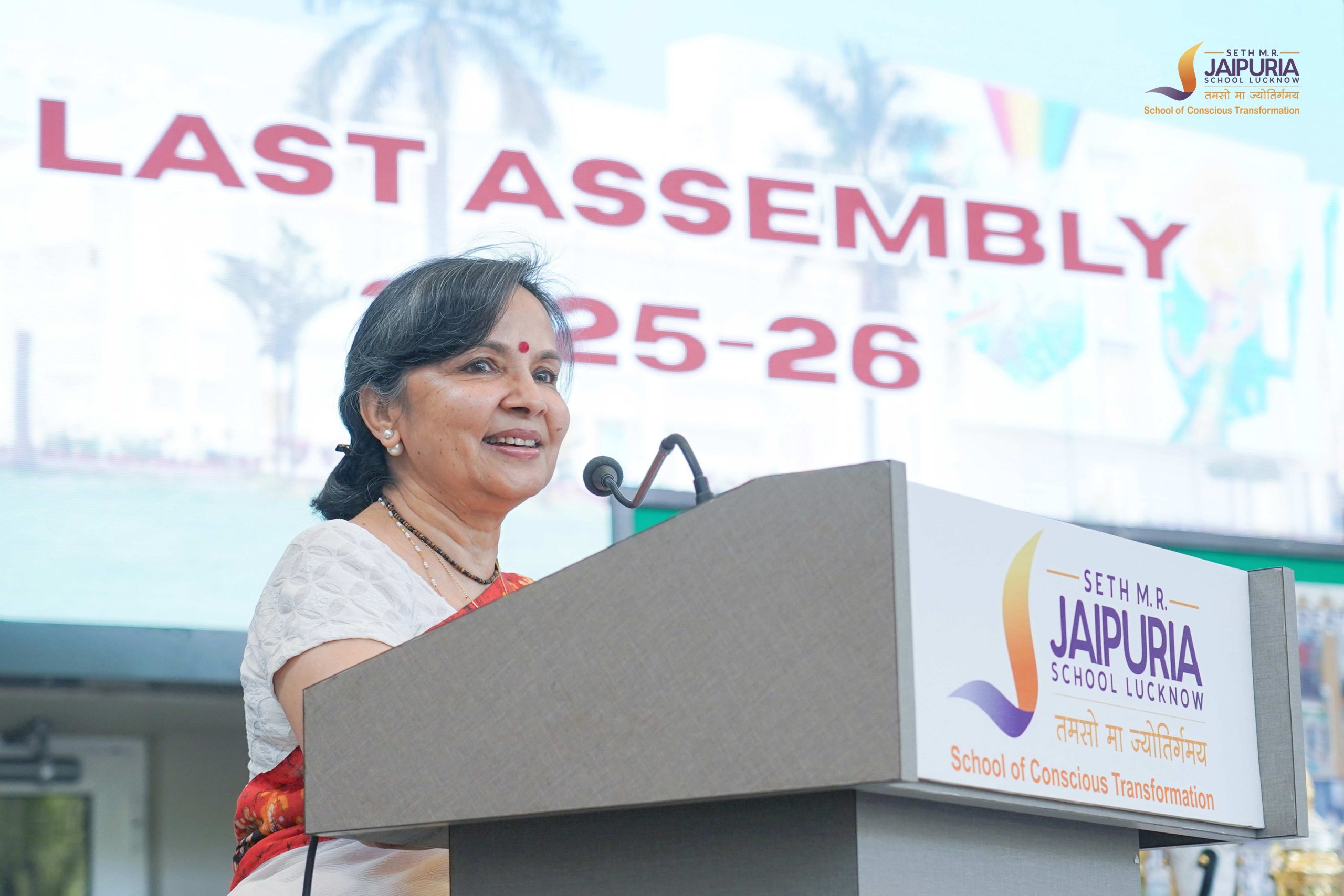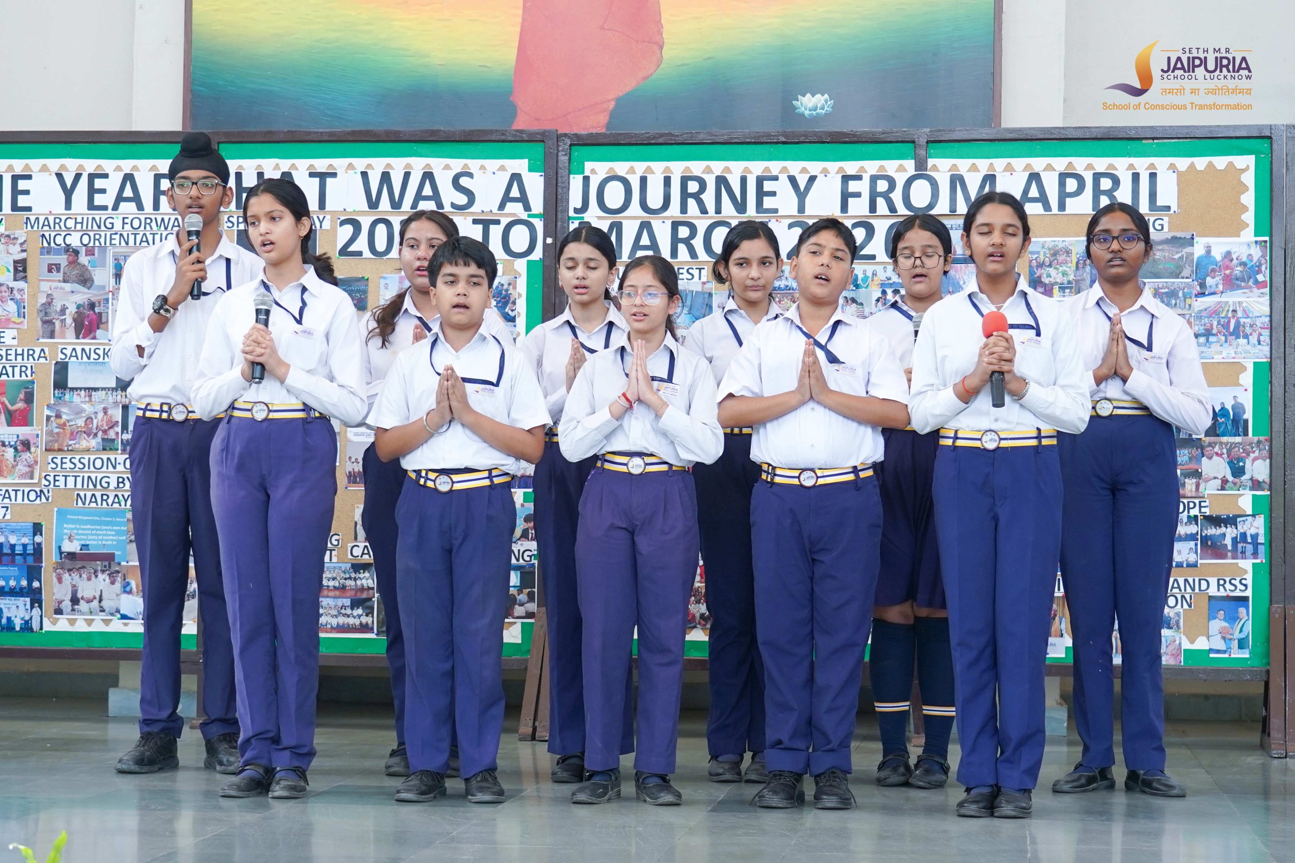 Addressing the gathering, Vice Chairperson Anjali Jaipuria Ma’am expressed heartfelt gratitude towards the teachers and appreciation for the students. She said, “I get tears in my eyes when I see an assembly so beautiful. I observed how concentrated our children were in their prayer to the divine. It’s really heartening.”