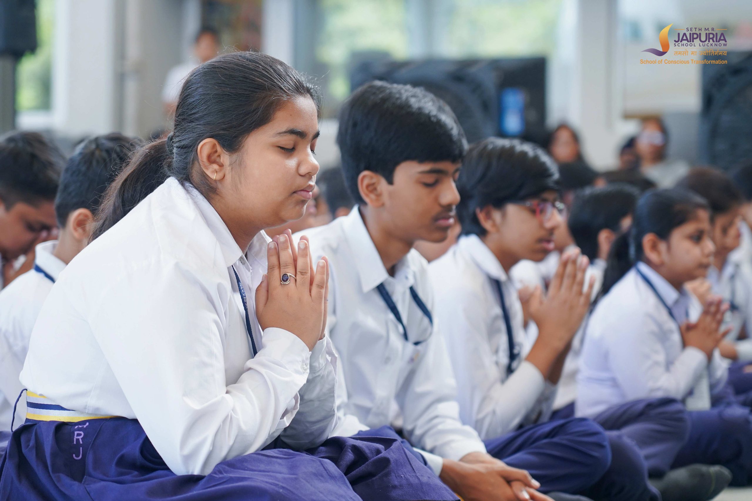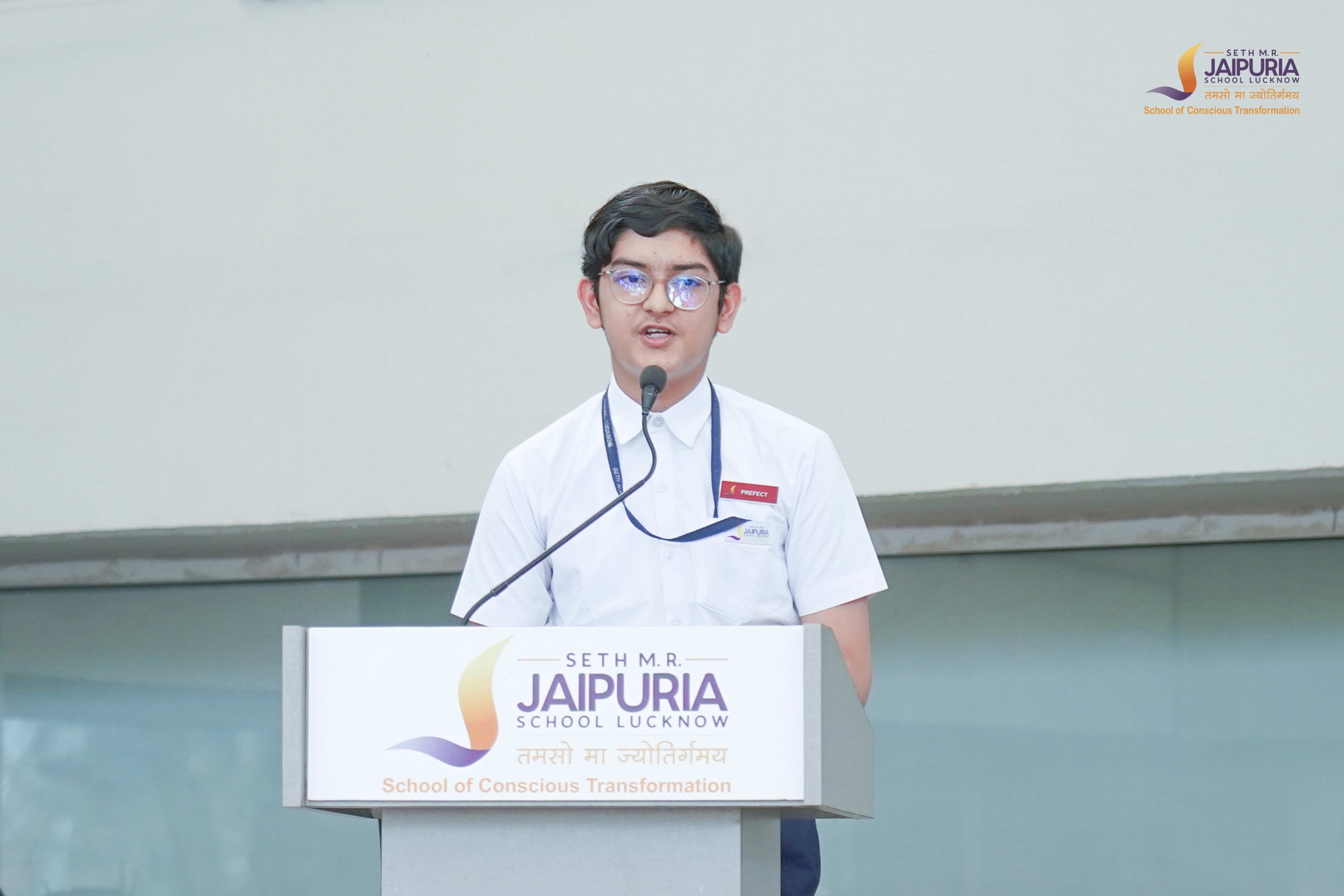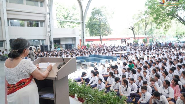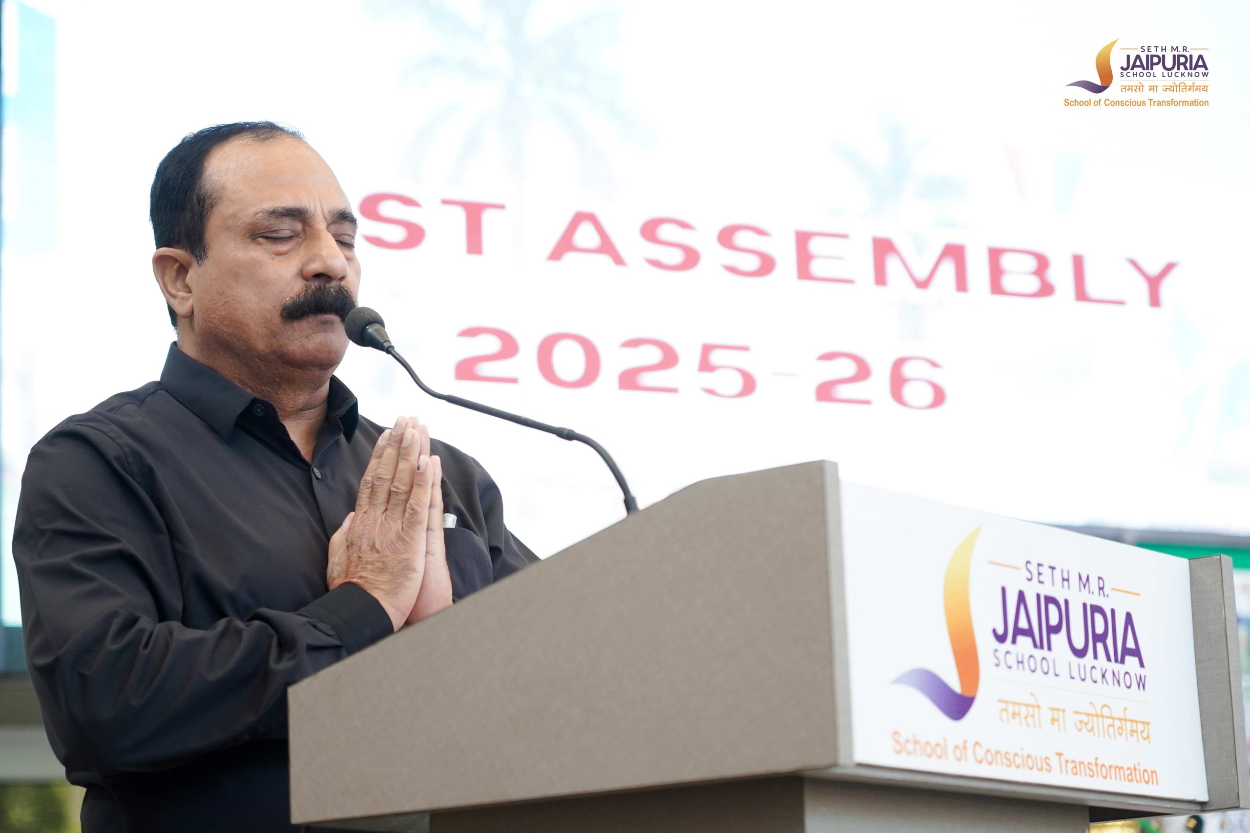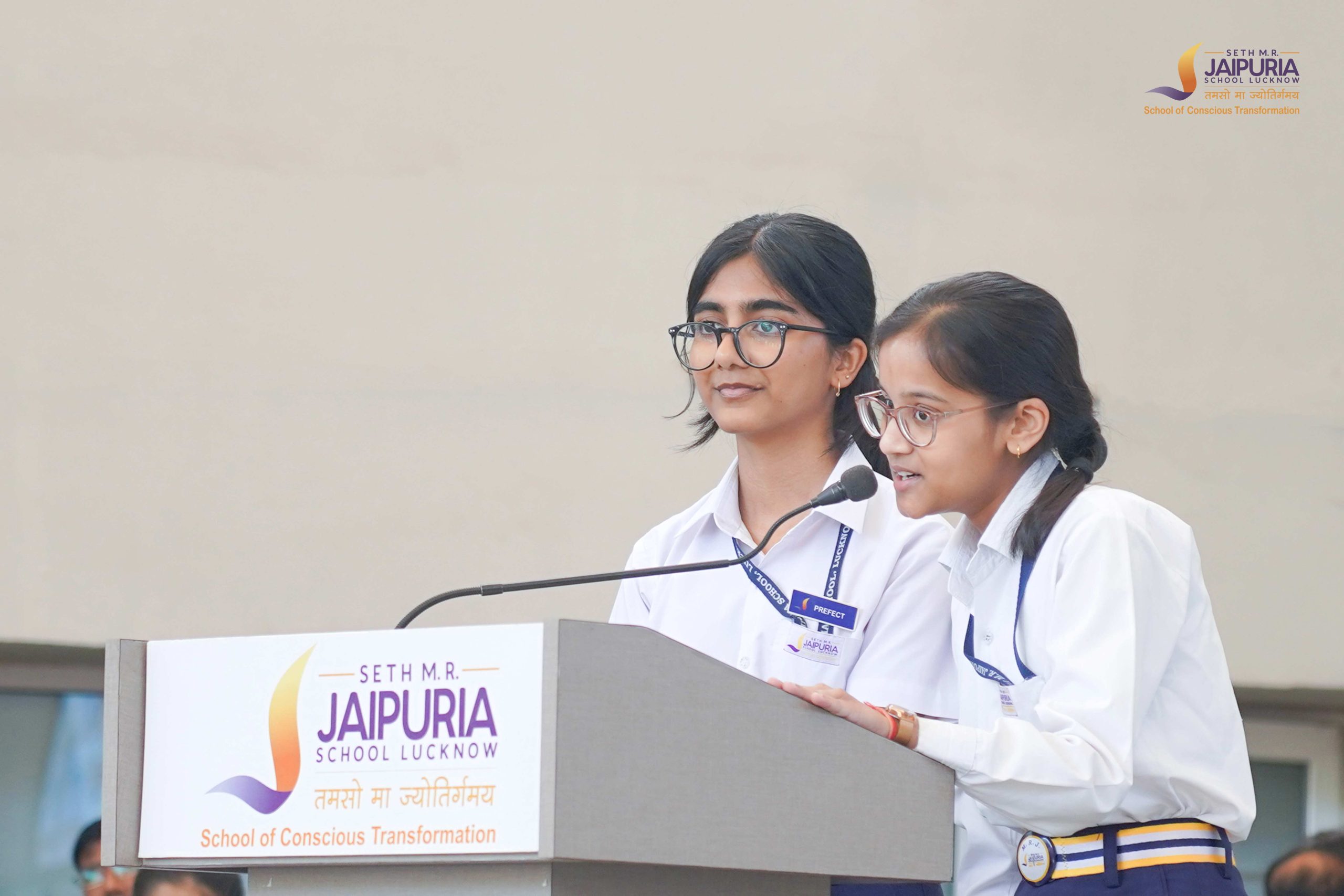 Addressing the gathering, Vice Chairperson Anjali Jaipuria Ma’am expressed heartfelt gratitude towards the teachers and appreciation for the students. She said, “I get tears in my eyes when I see an assembly so beautiful. I observed how concentrated our children were in their prayer to the divine. It’s really heartening.”