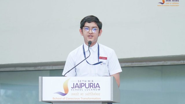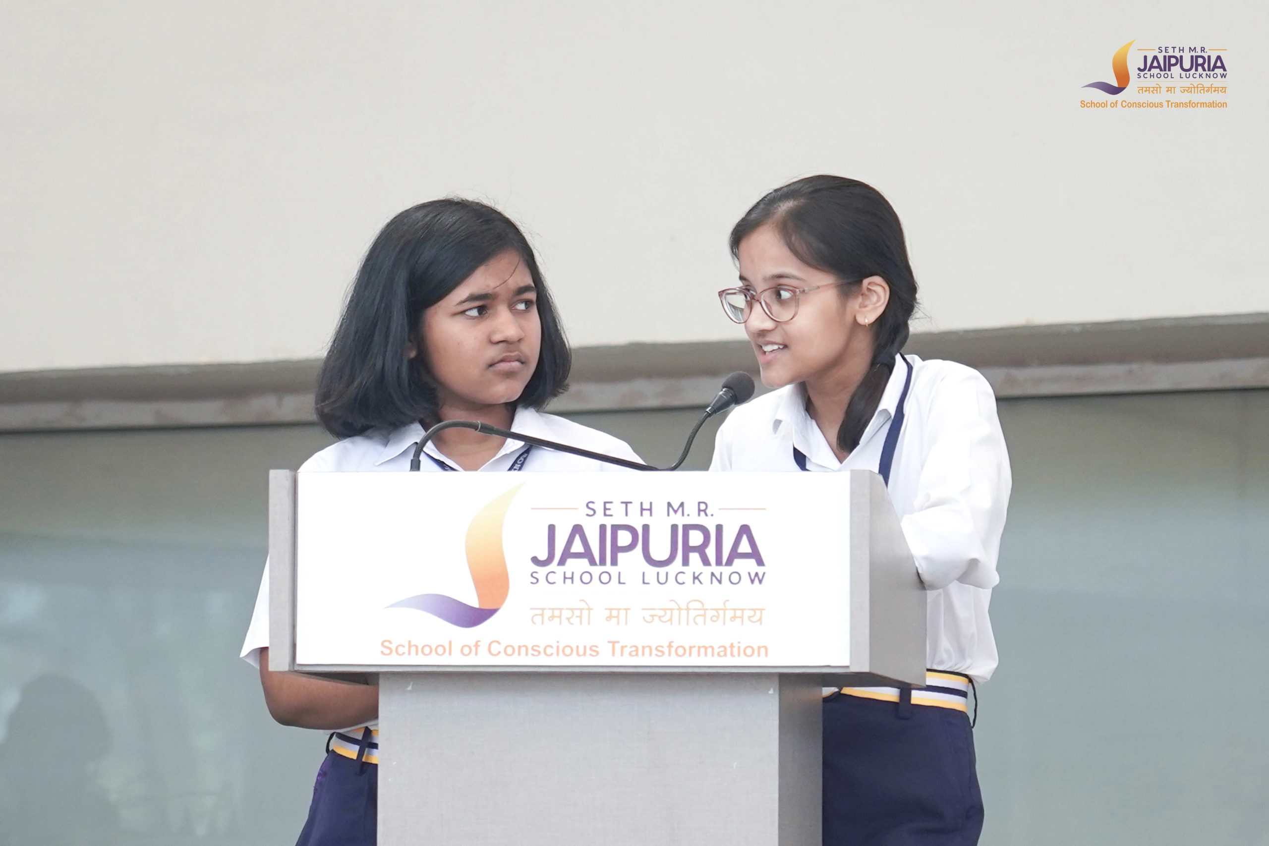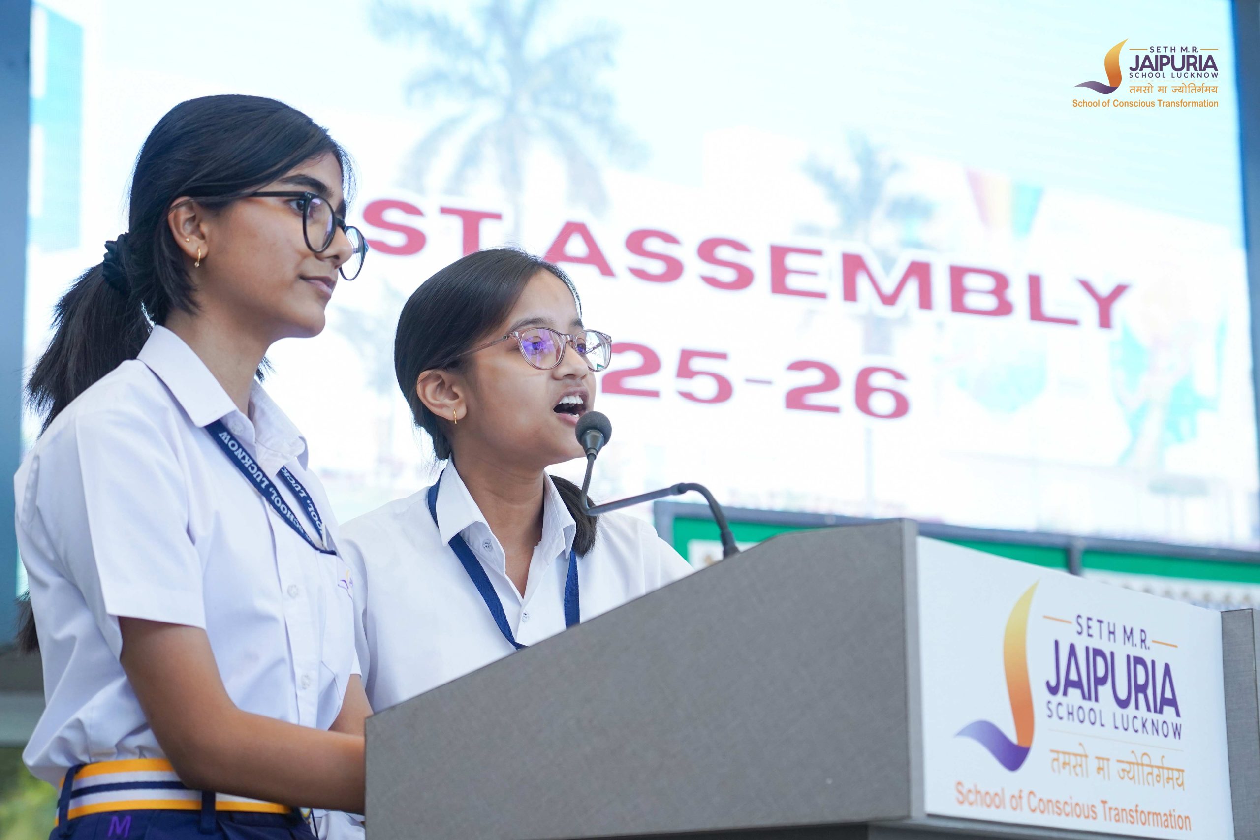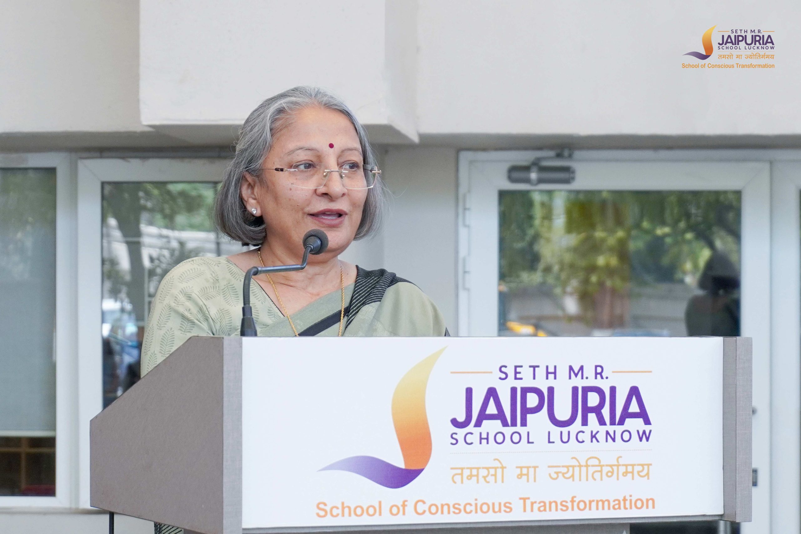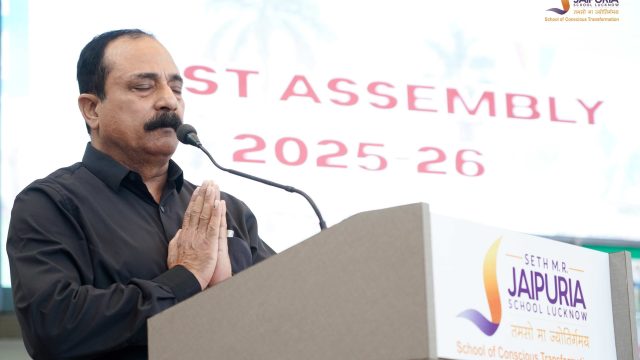 Addressing the gathering, Vice Chairperson Anjali Jaipuria Ma’am expressed heartfelt gratitude towards the teachers and appreciation for the students. She said, “I get tears in my eyes when I see an assembly so beautiful. I observed how concentrated our children were in their prayer to the divine. It’s really heartening.”