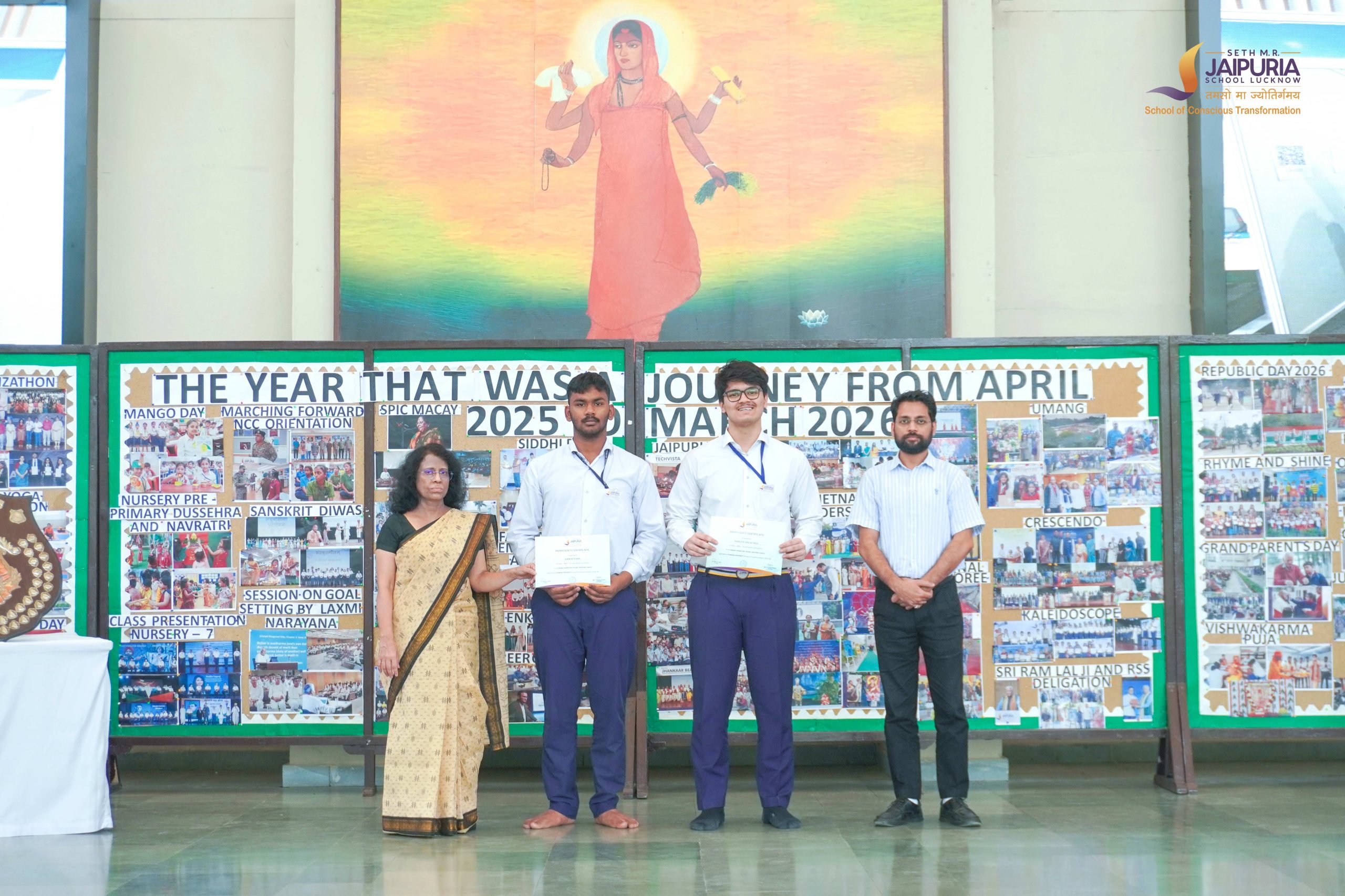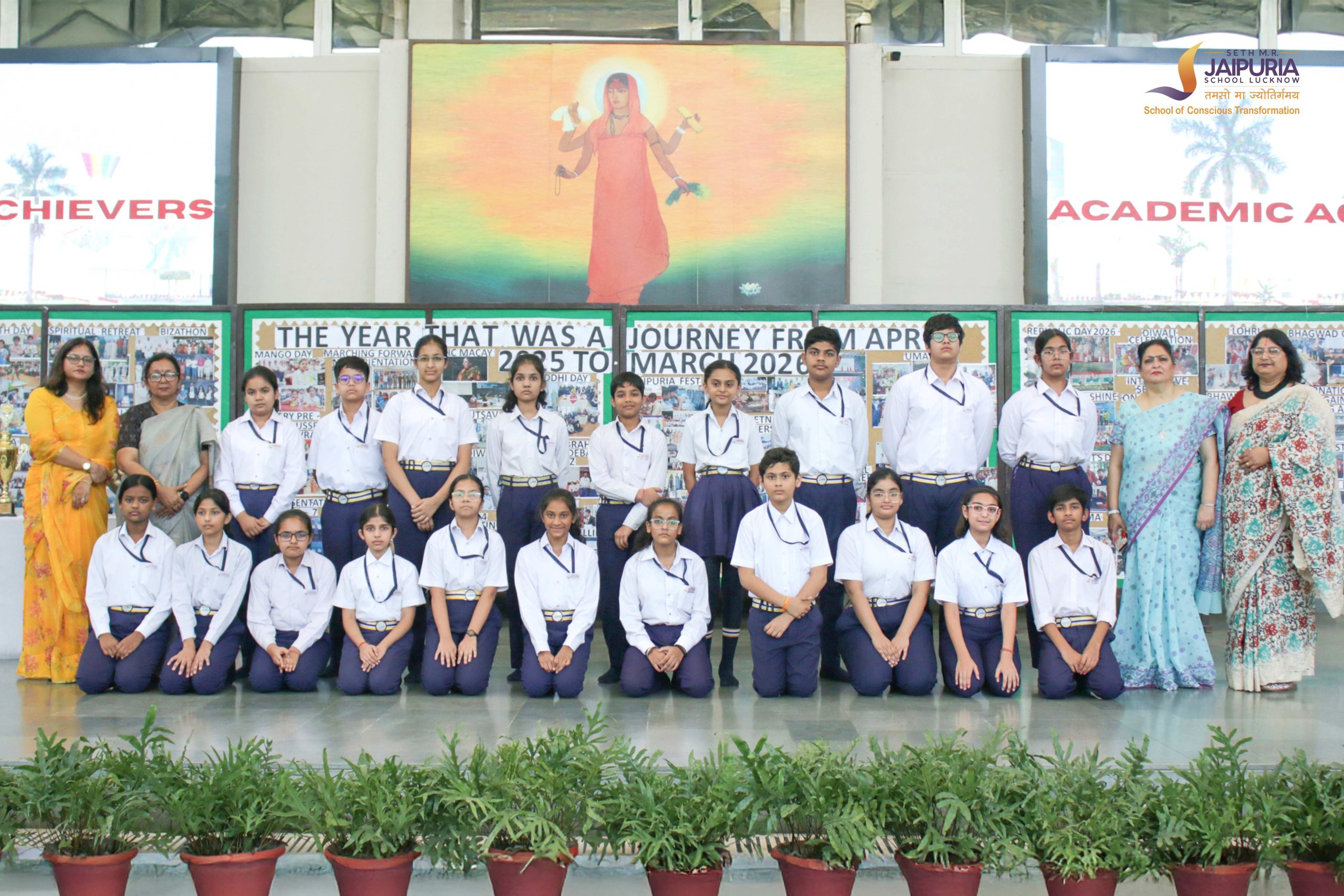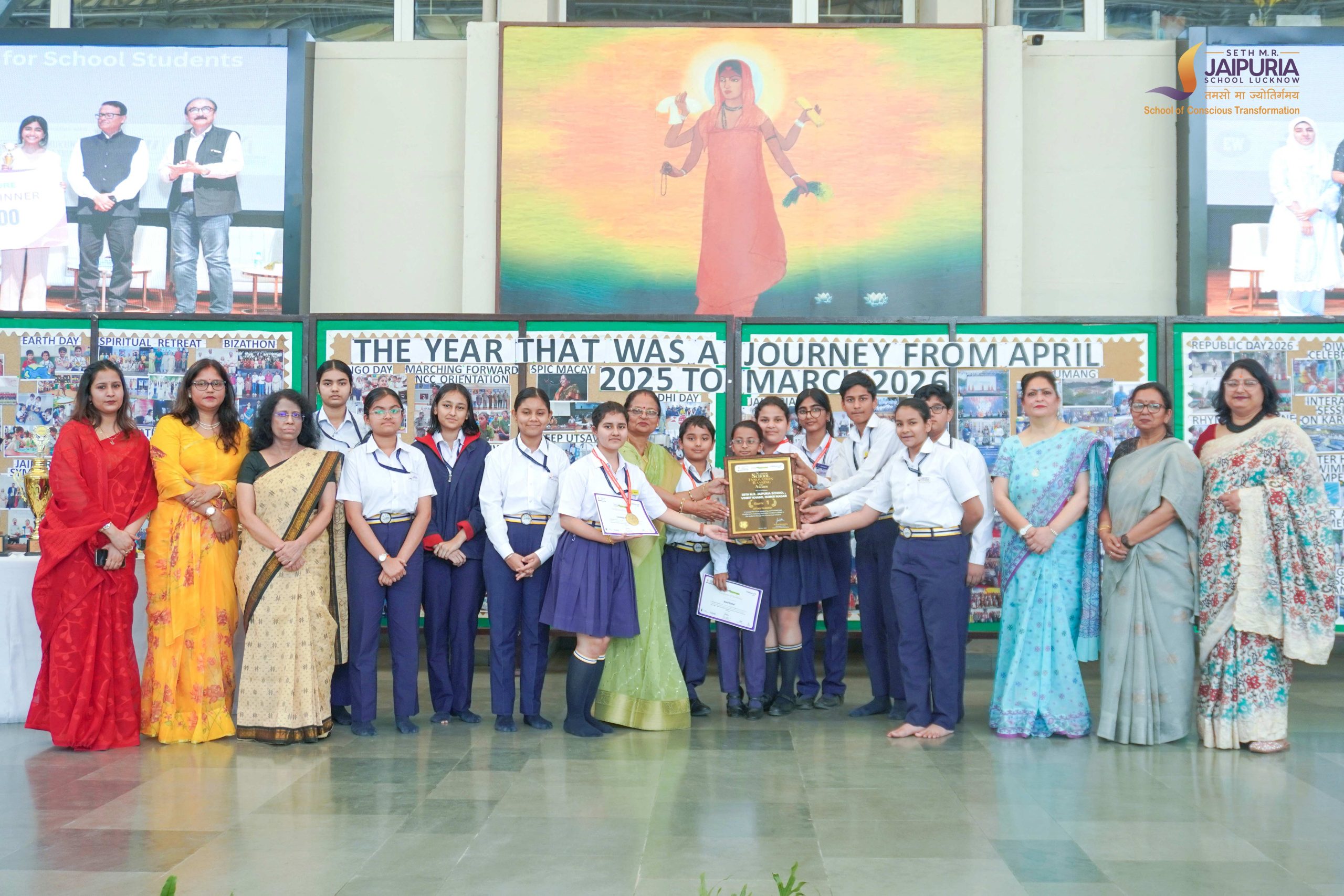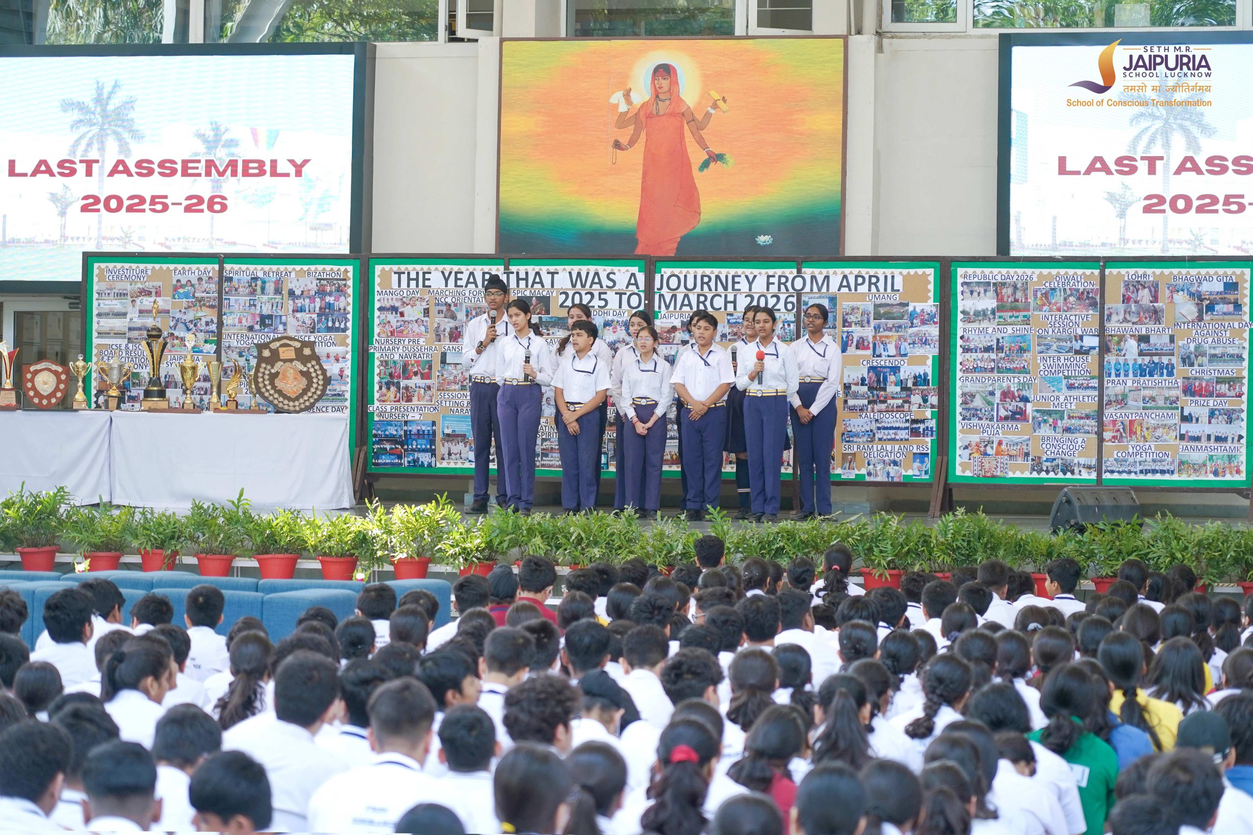 The Senior School of Seth M.R. Jaipuria School marked the conclusion of the academic session 2025–26 with a special assembly that brought together reflection, gratitude and celebration. A thoughtfully curated display board titled “The Year That Was: A Journey from April 2025 to March 2026” stood as a visual highlight, showcasing a collage of moments and milestones from across the year.