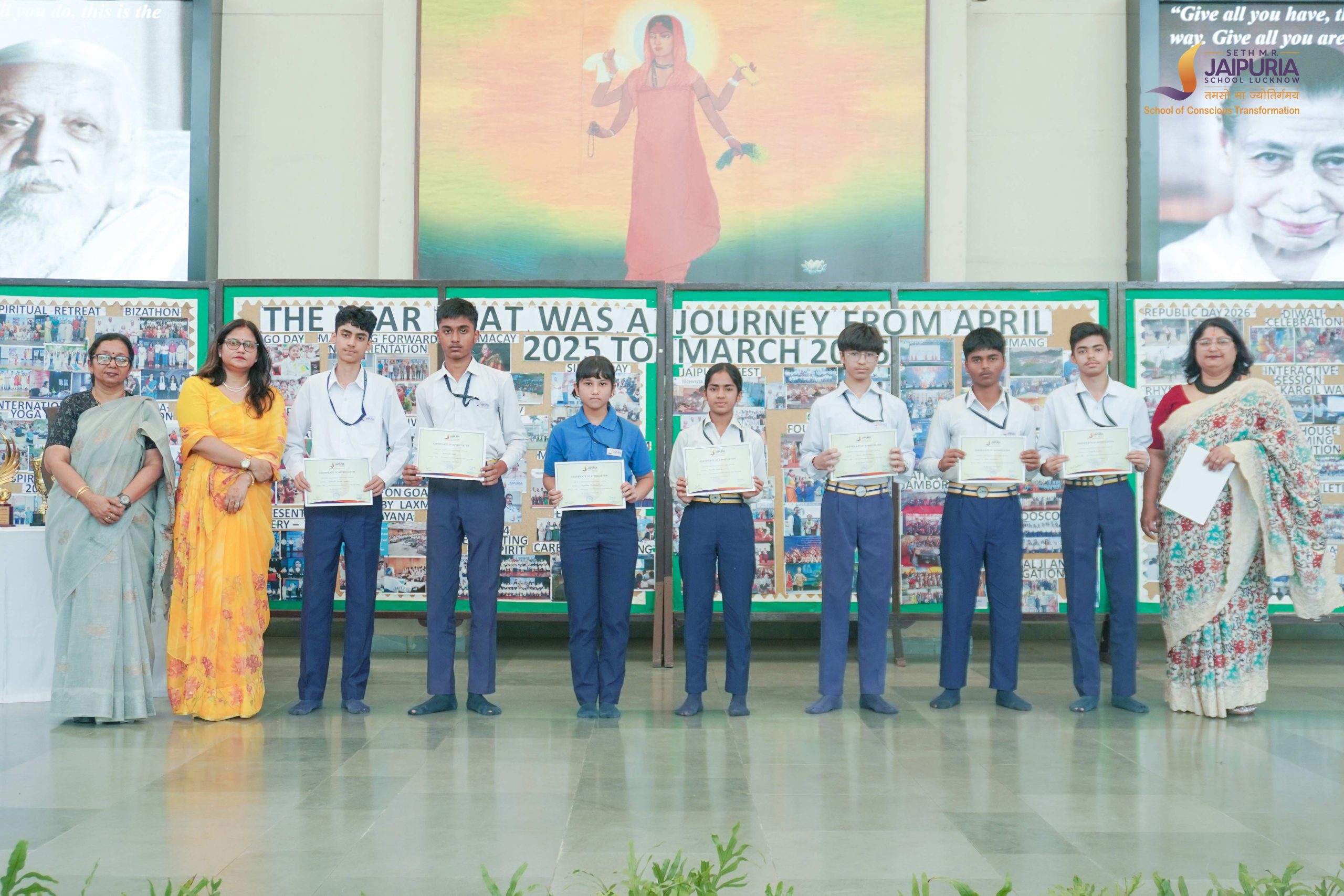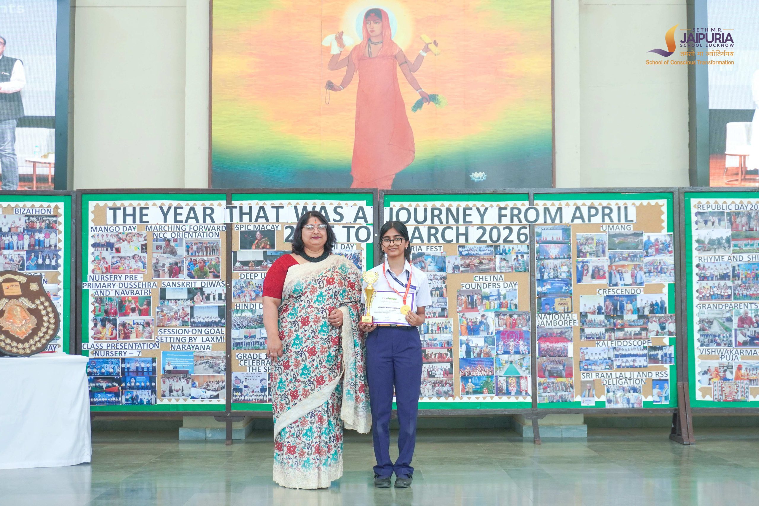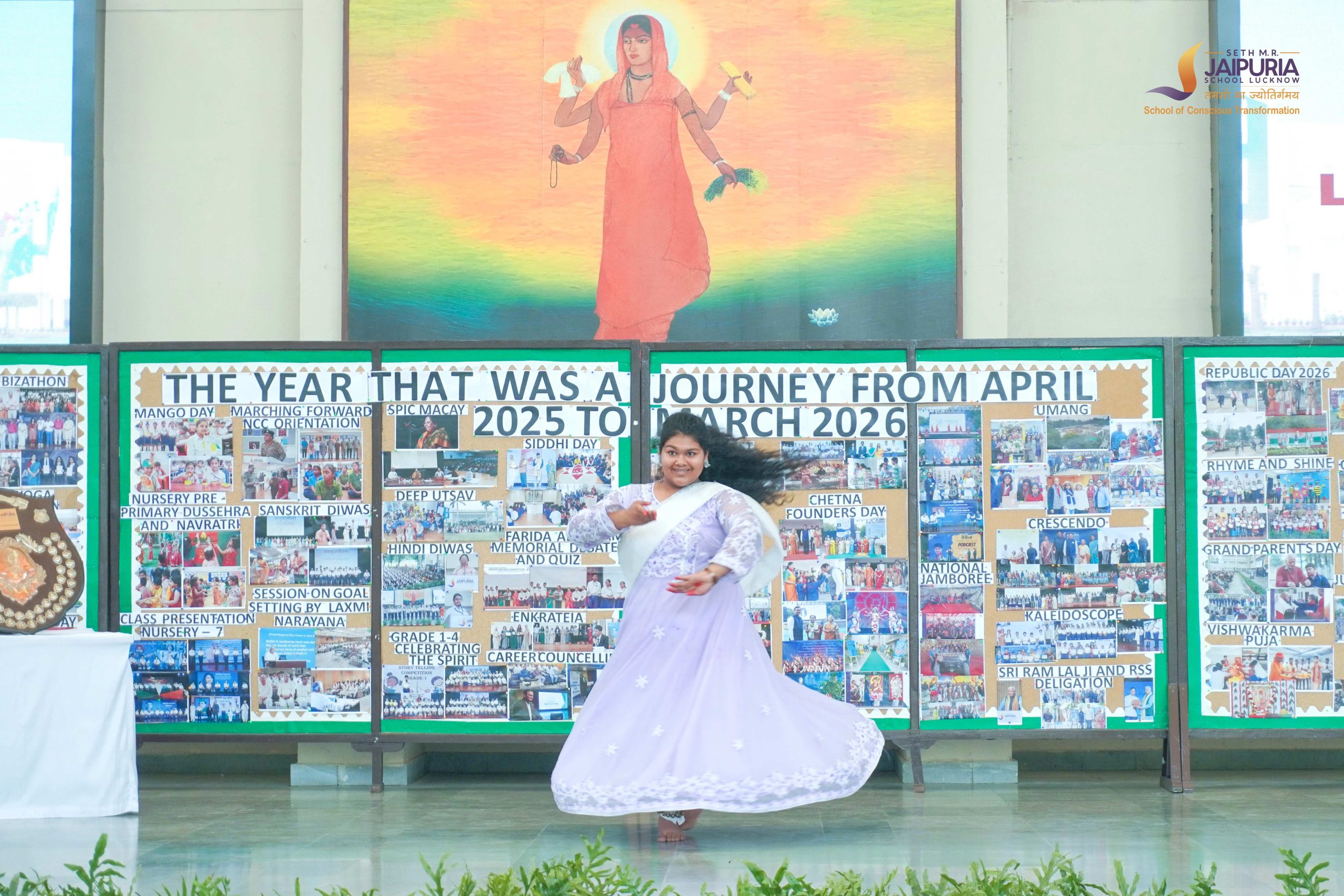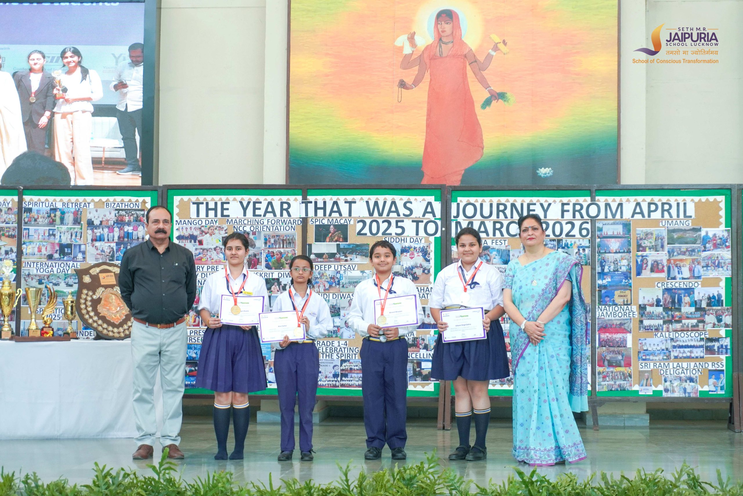 The Senior School of Seth M.R. Jaipuria School marked the conclusion of the academic session 2025–26 with a special assembly that brought together reflection, gratitude and celebration. A thoughtfully curated display board titled “The Year That Was: A Journey from April 2025 to March 2026” stood as a visual highlight, showcasing a collage of moments and milestones from across the year.