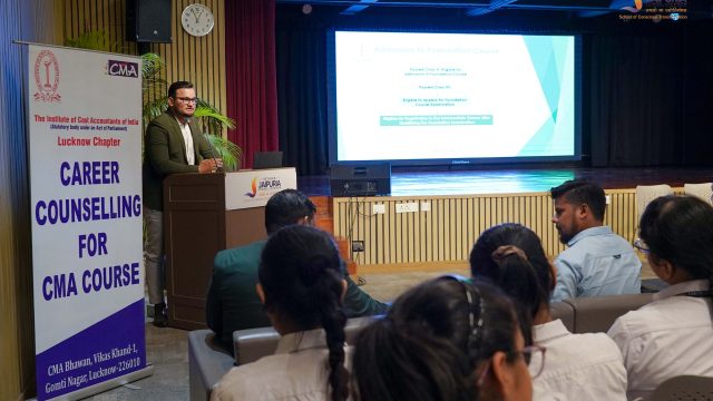 The session led by CMA Amit Jaiswal and CMA Yash Tripathi introduced students to the Cost and Management Accountancy course. They explained the course eligibility, the structure of its three levels Foundation Intermediate and Final and the wide range of career opportunities that come with it.