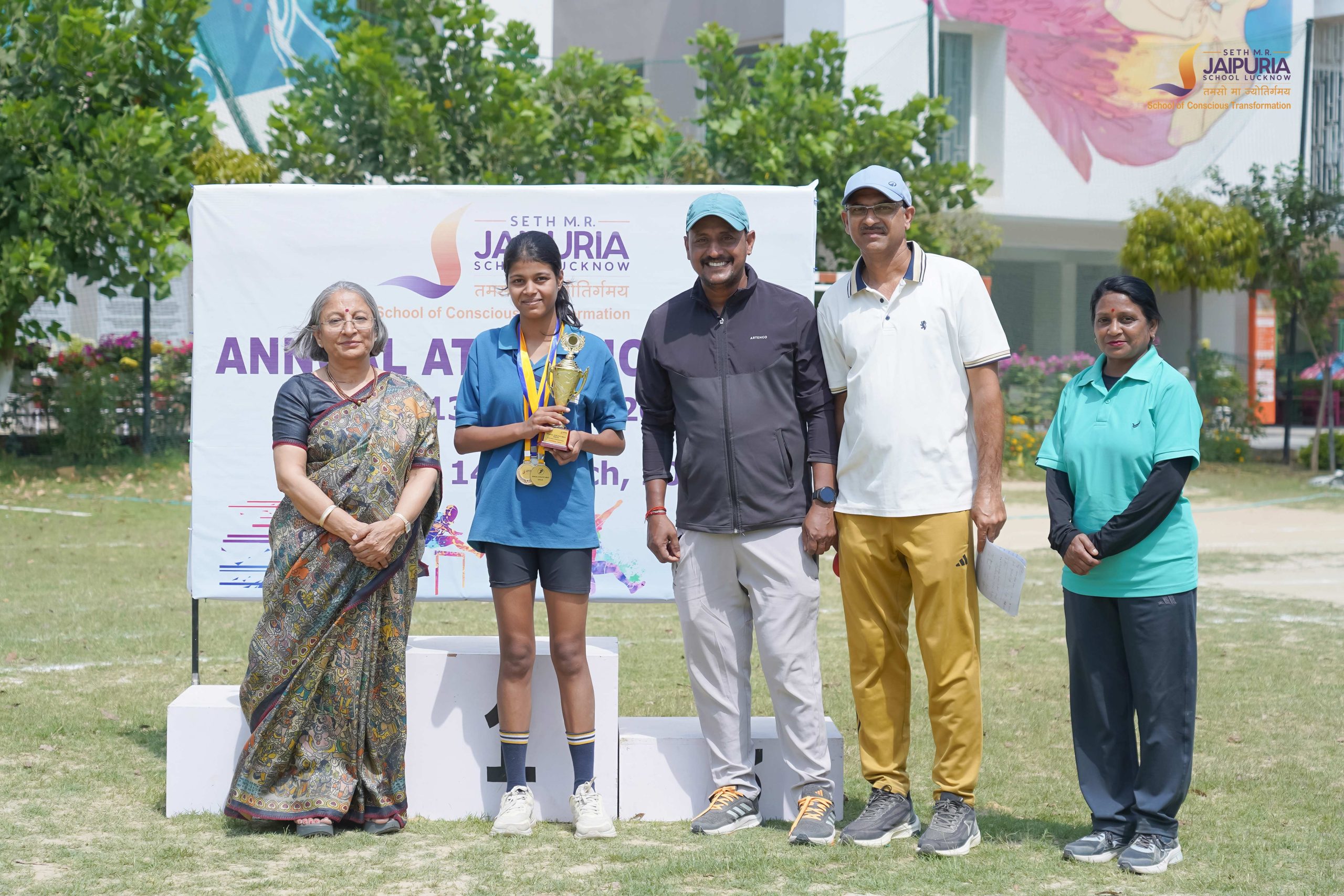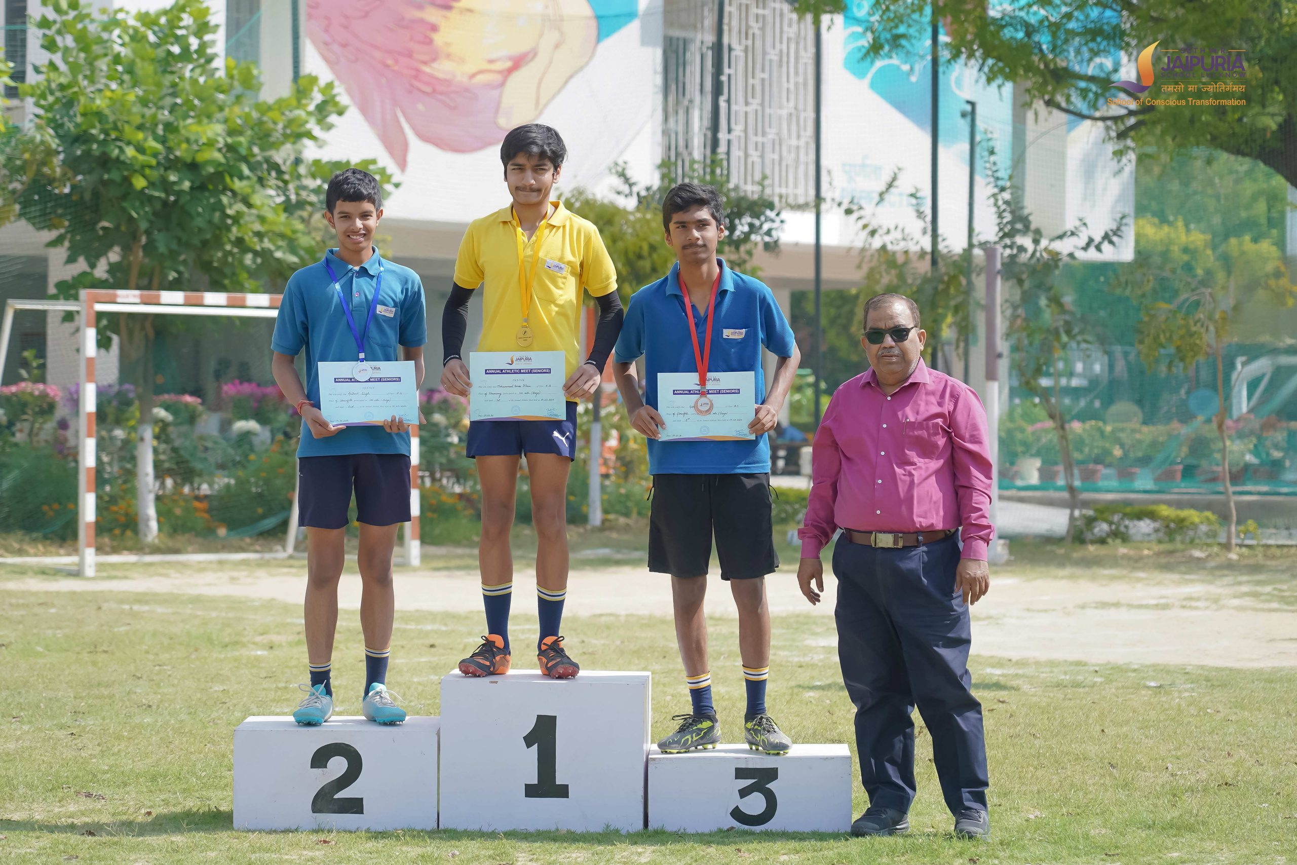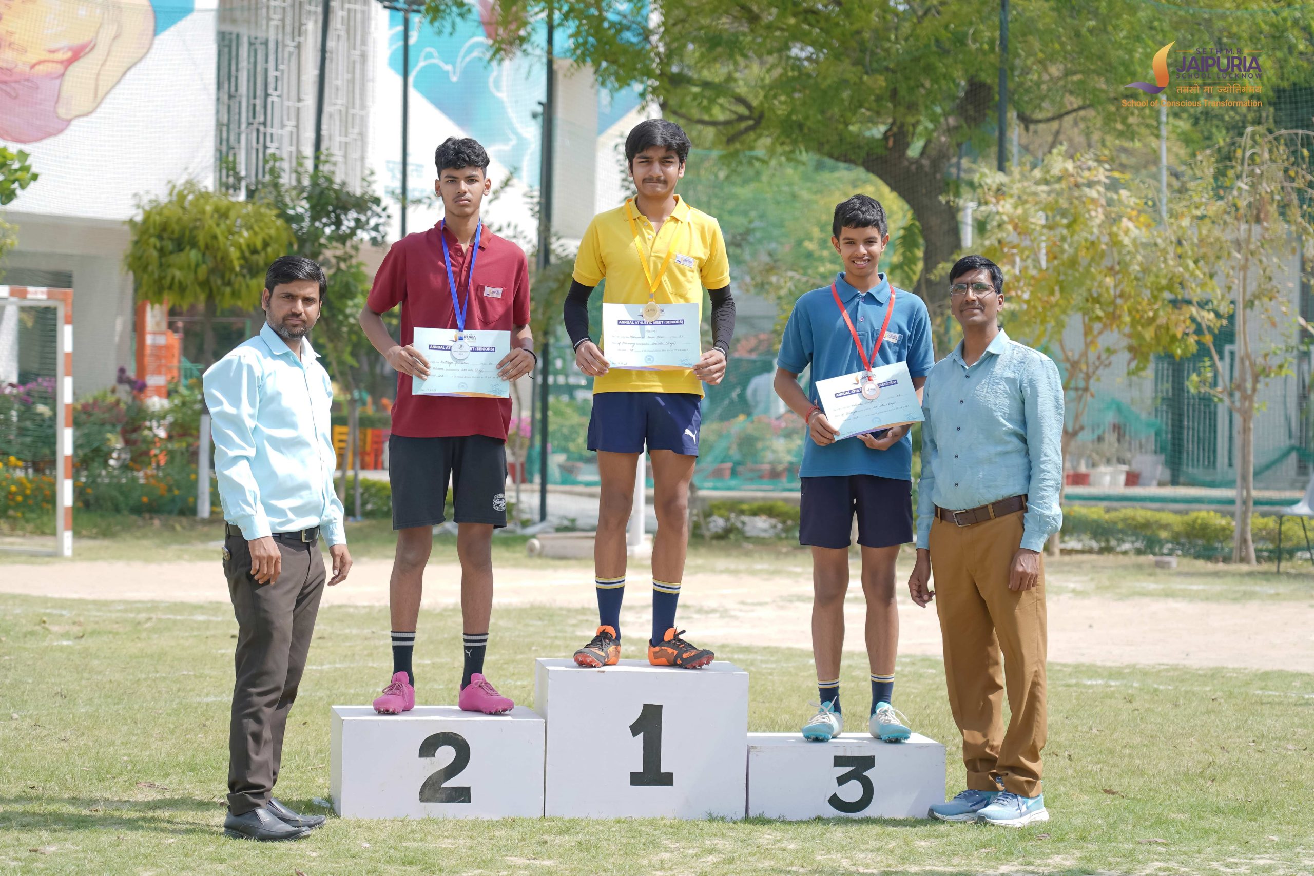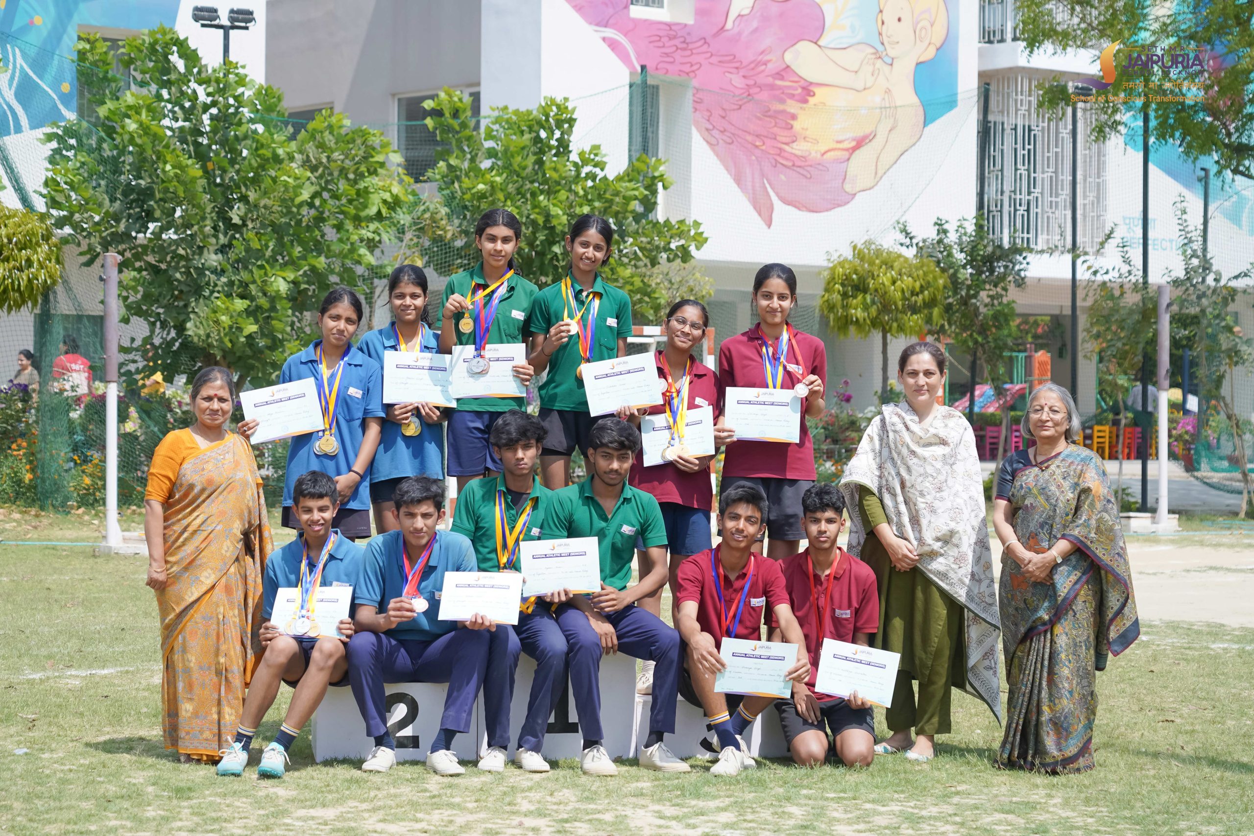 Senior students gathered on the front field of Seth M. R. Jaipuria School for the Annual Athletic Meet held over two days, on 13 and 14 March. The ground quickly filled with enthusiasm and anticipation as athletes prepared to test their strength, speed and teamwork in a series of sporting events.